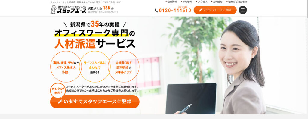 取引企業は880社。新潟県最多の求人を扱う、35年の実績を誇るオフィスワーク専門の派遣会社、スタッフエースをご紹介します。