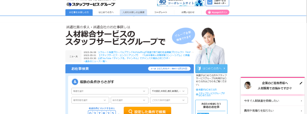 全国各地でサービスを展開し、それぞれの地域に合わせた多様な職種や働き方に柔軟に対応。業界トップクラスの求人数を扱っているスタッフサービスをご紹介します。